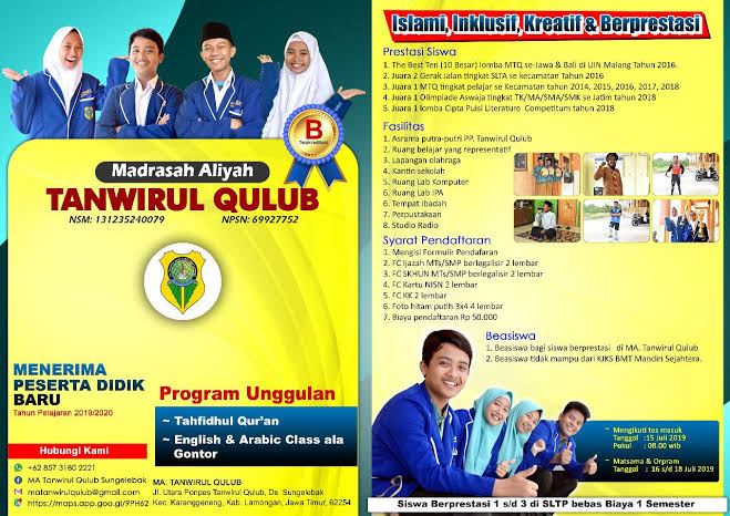 MA Tanwirul Qulub Sungelebak Karanggeneng Lamongan: Warisan Pendidikan dan PencerahanDi jantung Lamongan, Jawa Timur, terletak sebuah lembaga yang luar biasa yang telah membentuk pikiran muda dan memelihara jiwa selama lebih dari enam tahun. Yayasan Pondok Pesantren Tanwirul Qulub didirikan pada tahun 2015 dengan visi mulia untuk memberikan pendidikan berkualitas dan bimbingan spiritual kepada para siswanya. Di bawah kepemimpinan kepala sekolah yang berdedikasi, Drs. KH. Nasikh Fadlil M.Pd dan KH. Musta ‘di Ilyas, S.Pd, lembaga ini telah berkembang menjadi mercusuar pengetahuan dan pencerahan.